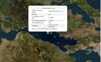 Σεισμός μεγέθους 4,8 βαθμών της κλίμακας Ρίχτερ, σύμφωνα με το Γεωδυναμικό Ινστιτούτο του Εθνικού Αστεροσκοπείου …