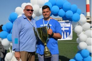 Βοηθήσανε οι παλιοί τους νέους, λέγοντας τους “μην το δίνετε σημασία, έτσι φωνάζει και στο τέλος θα είμαστε μια χαρά”. Είχαμε έτοιμη φιλοσοφία, βάλαμε κάποια πράγματα στις προπονήσεις, είχαμε καλή παρουσία στα φιλικά και την 1η αγωνιστική κάναμε ήττα στη Νέα Αρτάκη με 2-1, έχοντας όμως καλή παρουσία, χωρίς να είμαστε 100% έτοιμοι. Μπήκα στα αποδυτήρια στους ποδοσφαιριστές και τους είπα: ‘’Μάγκες πριν ήμουν 90% σίγουρος και τώρα είμαι 100%. Θα πάρουμε το πρωτάθλημα!’’. Από την πρώτη αγωνιστική και με ήττα. Δεύτερη αγωνιστική κάναμε νίκη μέσα στην Κόρινθο, από την 4η αγωνιστική ανεβήκαμε πρώτοι και δεν πέσαμε ξανά!».