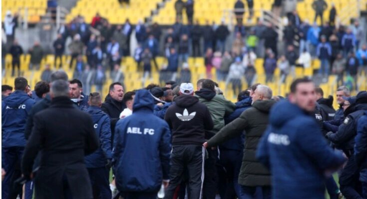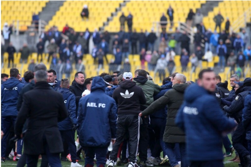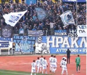 από τα οποία προκύπτει ότι πριν, κατά και μετά τη λήξη της ποδοσφαιρικής συνάντησης ΠΑΕ ΠΟΤ ΗΡΑΚΛΗΣ – ΠΑΕ ΑΕ ΛΑΡΙΣΑ, στις 23/02/2025 στο Καυταντζόγλειο Στάδιο, για την 1η αγωνιστική των Playoffs της Super League 2, αγωνιστικής περιόδου 2024-2025, φίλαθλοι της γηπεδούχου ομάδας προέβησαν σε ρίψη, εντός του αγωνιστικού χώρου, αντικειμένων πρόσφορων να προκαλέσουν σωματικές βλάβες προσώπων, και ειδικότερα μίας (1) κροτίδας και παραπάνω από είκοσι (20) πλαστικών φιαλών νερού, πλήρους ύδατος,
