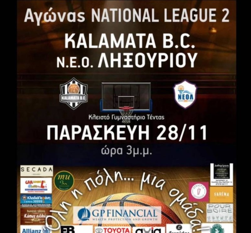 Με το βλέμμα στραμμένο στην άμεση επανεκκίνηση και την επιστροφή στις νίκες, η Καλαμάτα BC υποδέχεται την Παρασκευή 28 Νοεμβρίου (15:00) τον Ν.Ε.Ο. Ληξουρίου στο κλειστό της Τέντας, σε ένα παιχνίδι-«σταθμό» για τη συνέχεια της National League 2. Η αναμέτρηση αλλάζει ημέρα και ώρα, ωστόσο το ενδιαφέρον αναμένεται να παραμείνει έντονο, αφού η ομάδα χρειάζεται πάθος, ενέργεια και στήριξη για να μπει ξανά στον δρόμο των επιτυχιών.