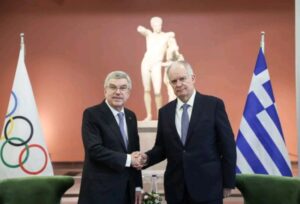 Πριν από την Τελετή, στο Αρχαιολογικό 0Μουσείο της Αρχαίας Ολυμπίας, η Αυτού Εξοχότης ο Πρόεδρος της Ελληνικής Δημοκρατίας είχε ιδιαίτερη συνομιλία με τον Πρόεδρο της ΔΟΕ Τόμας Μπαχ, παρουσία του Προέδρου της Ελληνικής Ολυμπιακής Επιτροπής κ. Ισίδωρου Κούβελου και του Μέλους της ΔΟΕ στην Ελλάδα Σπύρου Καπράλου.