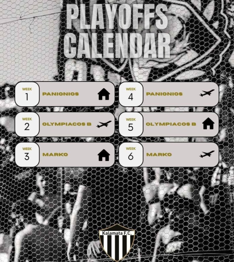 Η πρεμιέρα των play offs, που είναι προγραμματισμένη για τις 15 Φεβρουαρίου, φέρνει αμέσως ένα μεγάλο παιχνίδι, καθώς η Καλαμάτα θα υποδεχθεί τον Πανιώνιο στο Δημοτικό Στάδιο Παραλίας, σε ένα ματς που αναμένεται να κεντρίσει το ενδιαφέρον φίλων και των δύο ομάδων.