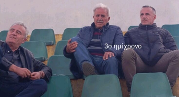 Στην κερκίδα διακρίνεται με δύο ανθρώπους που είναι κοντά στον Πάμισο Μεσσήνης,τους Αθανάσιο Τσάμη, Παναγιώτη Γιαννακόπουλο.(Φωτό)