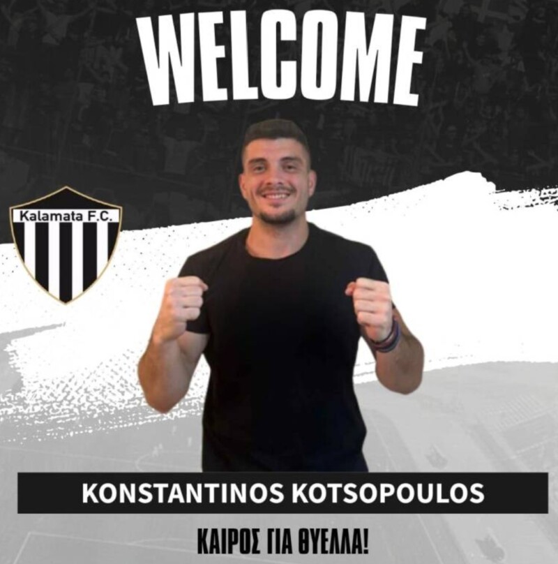 Η ΠΑΕ Καλαμάτα είναι στην ευχάριστη θέση να ανακοινώσει την απόκτηση του ποδοσφαιριστή Κωνσταντίνου Κωτσόπουλου, ο οποίος υπέγραψε μονοετές συμβόλαιο με την ομάδα μας.