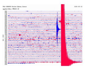 Δείτε το σεισμό, όπως τον κατέγραψε ο σεισμογράφος του Σεισμολογικού Δικτύου του Γεωδυναμικού Ινστιτούτου του Εθνικού Αστεροσκοπείου Αθηνών, που είναι τοποθετημένος στη Ζάκρο του νομού Λασιθίου.