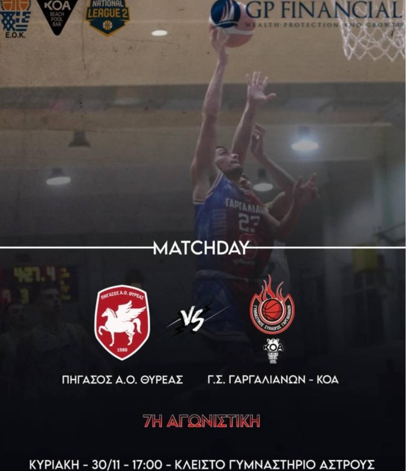 Ο ΓΣ Γαργαλιάνων ταξιδεύει αυτή την Κυριακή στο Άστρος, όπου θα αντιμετωπίσει τον Πήγασο Θηρέας στο πλαίσιο της 7ης αγωνιστικής της National League 2, σε ένα ματς που αναμένεται να συγκεντρώσει μεγάλο ενδιαφέρον.