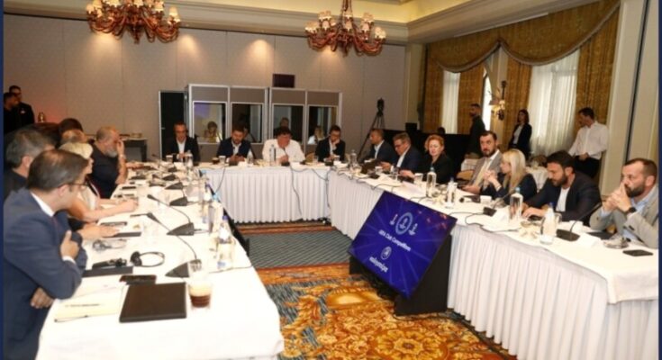 Ο πρόεδρος της ΕΠΟ Μάκης Γκαγκάτσης, που απηύθυνε την πρόσκληση για συνάντηση στους ιδιοκτήτες των ομάδων, καλωσόρισε τους συμμετέχοντες εκ μέρους της Ομοσπονδίας, που λειτουργεί σαν γέφυρα μεταξύ των συλλόγων και των διεθνών ποδοσφαιρικών αρχών, ενώ στη συνάντηση μαζί του παρέστη η Εκτελεστική Γραμματέας Δόμνα Τσιώνη.