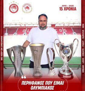 “15 χρόνια με 11 πρωταθλήματα Ελλάδας, 5 κύπελλα Ελλάδας και τα πρώτα 2 ευρωπαϊκά μας τρόπαια! Συνεχής στήριξη στον Ερασιτέχνη Ολυμπιακό ο οποίος μετράει 215 τίτλους στα κύρια ομαδικά Ολυμπιακά αθλήματα ανδρών και γυναικών σε Ελλάδα και Ευρώπη!