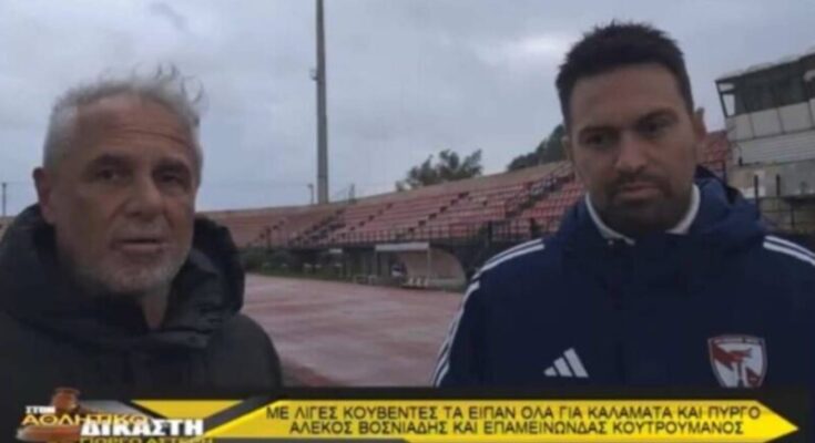 Ενδιαφέρουσες δηλώσεις πραγματοποίησαν μετά το παιχνίδι ανάμεσα στον Πύργο και την Καλαμάτα, ο τεχνικός της Μαύρης Θύελλας Αλέκος Βοσνιάδης, αλλά και ο τεχνικός των Ερυθρόλευκων Επαμεινώνδας Κουτρομάνος στον Γιώργο Αστερή.